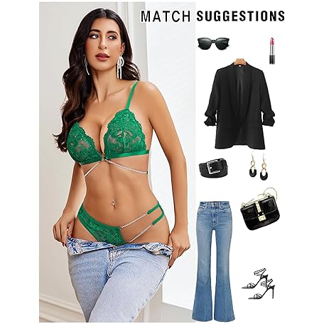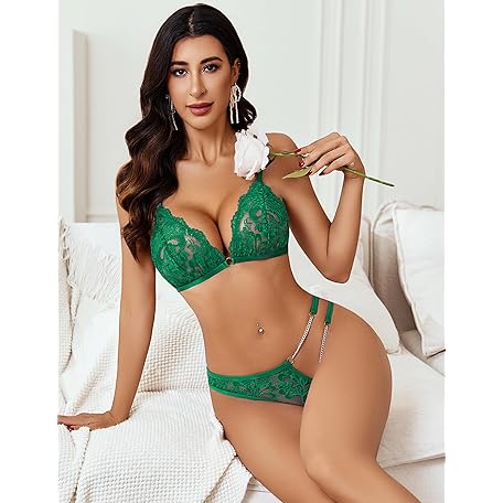 • Avidlove Sexy Lingerie Set Women’s 2 Piece Lace Lingerie Set with Chain Detail Deep V Neck Bralette and Panty Set