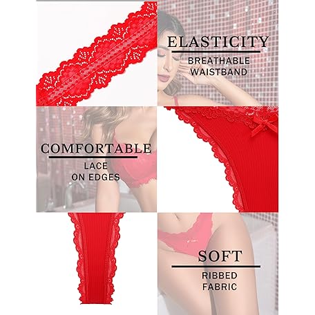 • Avidlove Women's Lace Waist Thongs Underwear Ribbed Sexy T Back Panties for Women Pack