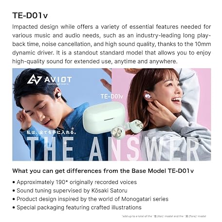 Thông tin sản phẩm AVIOT Monogatari Series Anime Wireless Earbuds TE-D01v-MGT 蕩(Tore) Model, Officially Licensed, Special Package & Design & Japanese Special Voice, Noise Cancelling