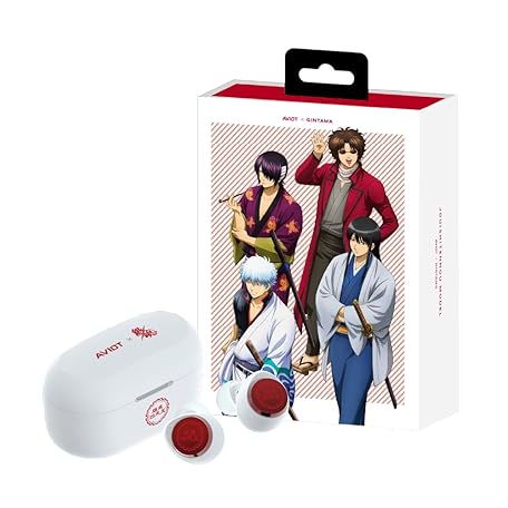 AVIOT TE-V1R-GTJ Gintama Collaboration Wireless Earbuds Officially Licensed, Sepcial Package,Desgin,Japanese Sepcial Voice, Adaptive Noise Cancelling, Bluetooth 5.3(Jouishi Shitennou Model)