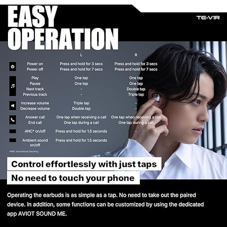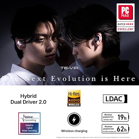AVIOT TE-V1R Wireless Earbuds | Hybrid Dual Driver 2.0, LDAC Support, Up to 62-Hour Playback, Adaptive Hybrid Noise Canceling, Wireless Charging, IPX4 Water Resistance, Low Latency Mode (Black)