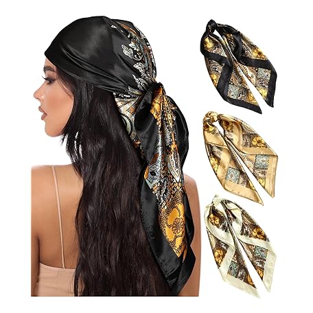 Sản phẩm AWAYTR 35” Large Square Satin Head Scarf - 3Pcs Satin Hair Scarves Silk Bandana Scarf Headscarf Silk Feeling Scarf for Women đang được bán với giá ưu đãi là $11.4341 tại nước Mỹ.