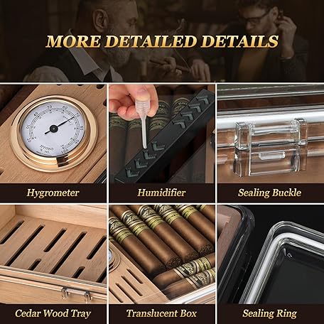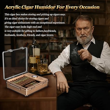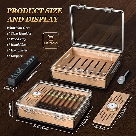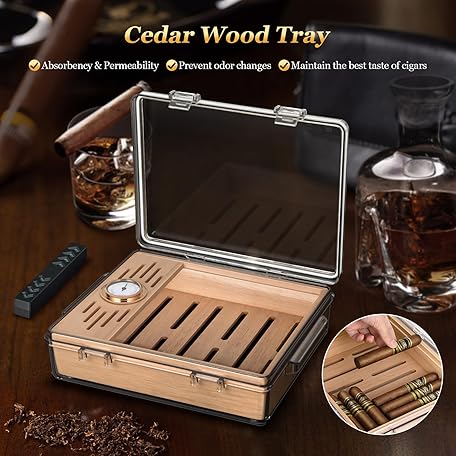 AWOTE Acrylic Cigar Humidor, Clear Cigar Box with Hygrometer, Humidifier and Cedar Wood Tray, Desktop Cigar Case Can Hold About 20-30 Cigars (Clear)