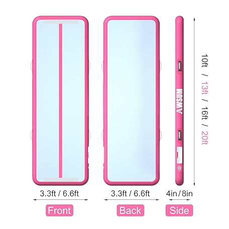 Sản phẩm AWSUM Inflatable Air Gymnastics Mat 10ft/13ft/16ft/20ft/23ft Training mat 4/8 inches Thick tumbling mat with Electric Pump for Home/Gym/Outdoor đang được bán với giá ưu đãi là $132.9691 tại nước Mỹ.