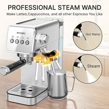 AYCHIRO Espresso Machine with Steam Milk Frother,20 Bar Stainless Steel Coffee Maker for Latte & Cappuccino,Detachable Water Tank/Drip Tray, Hot Water Function for Home & Office Use