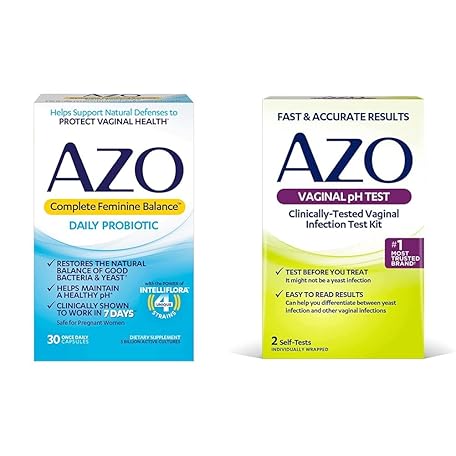 Thông tin sản phẩm AZO Complete Feminine Balance Probiotics for Vaginal Health, 30 Count & Vaginal pH Test Kit, 2 Self-Tests