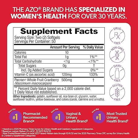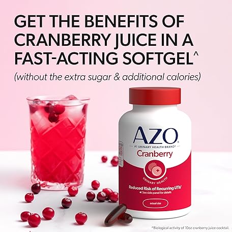 Thông tin sản phẩm AZO Cranberry Supplement, Made with Concentrated Whole Fruit Cranberry Powder to Help Cleanse and Protect the Urinary Tract*, Sugar Free Cranberry Pills, Non-GMO, 100 Softgels