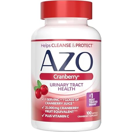 AZO Cranberry Urinary Tract Health Dietary Supplement, 1 Serving = 1 Glass of Cranberry Juice, Sugar Free, 100 Softgels (Pack of 24)