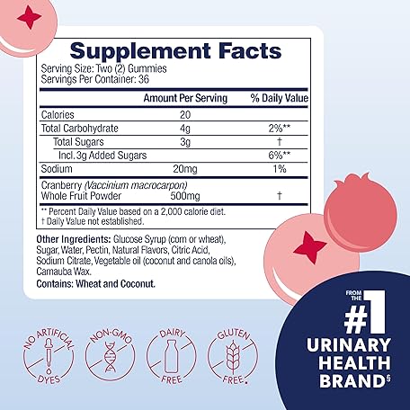 Thông tin sản phẩm AZO Cranberry Urinary Tract Health Gummies Dietary Supplement, 2 Gummies = 1 Glass of Cranberry Juice, Helps Cleanse & Protect, Natural Berrylicious Flavor, Non-GMO, 72 Gummies