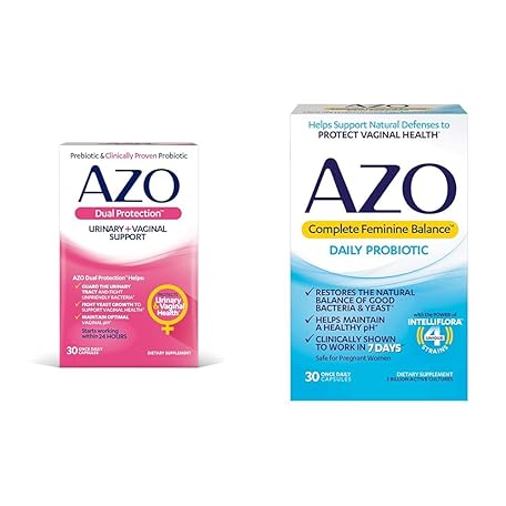 Sản phẩm AZO Dual Protection | Urinary + Vaginal Support* | Prebiotic Plus Clinically Proven Women's Probiotic 30 Count & Complete Feminine Balance Daily Probiotics for Women đang được bán với giá ưu đãi là $58.2714 tại nước Mỹ.