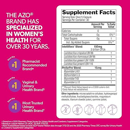 Thông tin sản phẩm AZO Dual Protection, Urinary + Vaginal Support, Prebiotics and Probiotics for Women*, Starts Working Within 24 Hours, Non-GMO, 30 Count