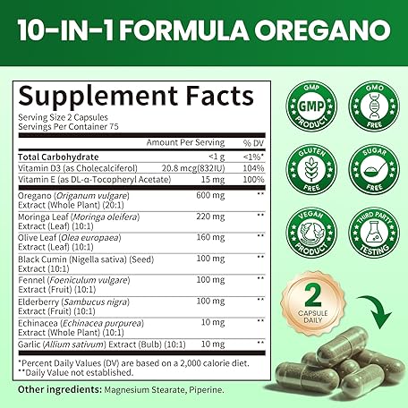 B BEWORTHS 2PC Oil of Oregano with Black Seed Oil - Carvacrol Oregano Oil Capsules Support Immune, Antioxidant & Digestive Health | Moringa, Olive Leaf, Elderberry, Echinacea, Garlic, Fennel, Non-GMO