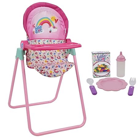 Thông tin sản phẩm Baby Alive 509 Crew Doll High Chair Set - Pink & Rainbow - 6 Pieces, Fits Dolls Up to 24", Highchair w/Front Feeding Tray & 5 Feeding Accessories, Pretend Play for Kids Ages 3+