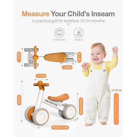 Baby Balance Bike for 1 Year Old Boys Girls, 10-24 Month Toddler Balance Bike, Baby Bike with No Pedal 4 Silence Wheels, First Ride on Toys with Adjustable Soft Seat, First Birthday Gifts