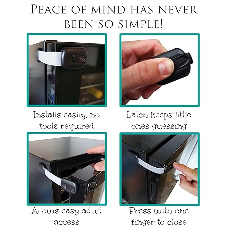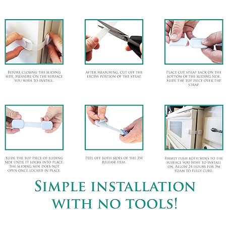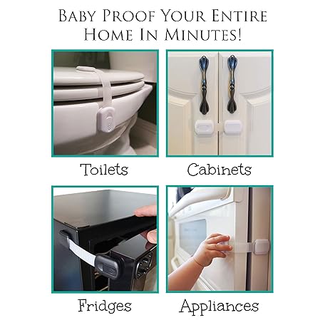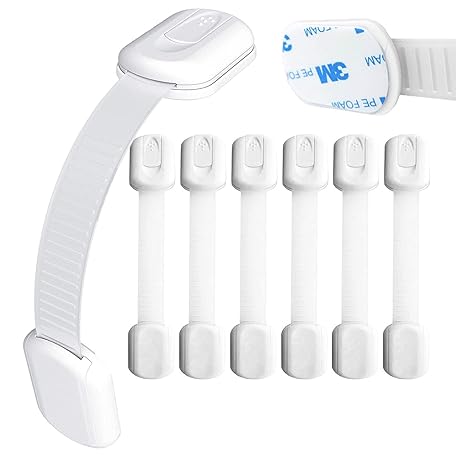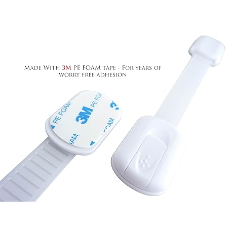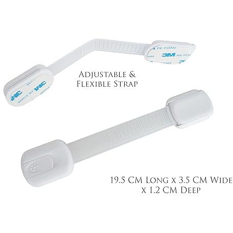 Thông tin sản phẩm Baby Safety Locks | Child Proof Cabinets, Drawers, Appliances, Toilet Seat, Fridge and Oven | Tools Not Required | Uses 3M Adhesive with Adjustable Strap and Latch System (6-Pack, White)