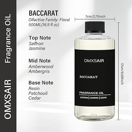 Thương hiệu omxsair là cái tên nổi tiếng được rất nhiều khách hàng trên thế giới chọn lựa. Với kiểu dáng đẹp mắt, sang trọng, sản phẩm Baccarat Hotel Diffuser Oil Inspired by Baccarat 17.6 Fl Oz(500ml) - Hotel Fragrance Diffuser Oil & Home Luxury Scents - Saffron, Cedar,Ambergris Essential Oils Blend for Aromatherapy Diffuser là sự lựa chọn hoàn hảo nếu bạn đang tìm mua một món cho riêng mình.