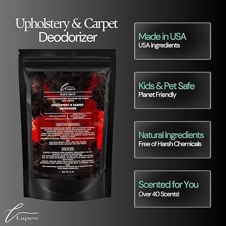 • Baccarat Rouge Carpet Freshener Powder: Powerful Odor Eliminator for Home, Upholstery Deodorizer, Carpet Deodorizer, Pet Urine, Cat Litter Box - Baccarat Rouge Fragrance.