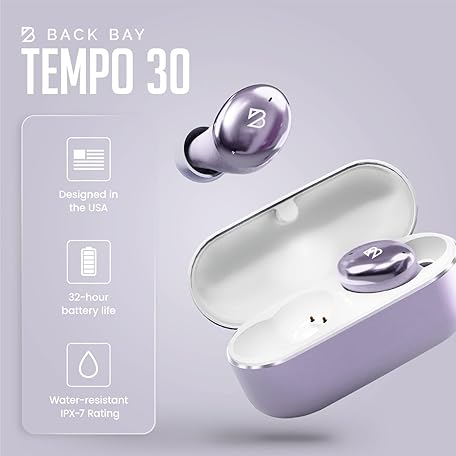 Thông tin sản phẩm Back Bay Audio Tempo 30 Wireless Earbuds for Small Ears - Award-Winning Sound, Sweatproof Bluetooth Earbuds, Comfortable Ear Buds for Women, Purple Earphones Small Ear Canals, Long Battery Headphones