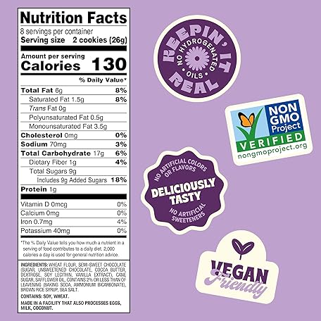 Thông tin sản phẩm Back to Nature Chocolate Chunk Cookies, Plant-Based, Non-GMO, Made with Wheat Flour, Snack Happy, 7.5 oz Box