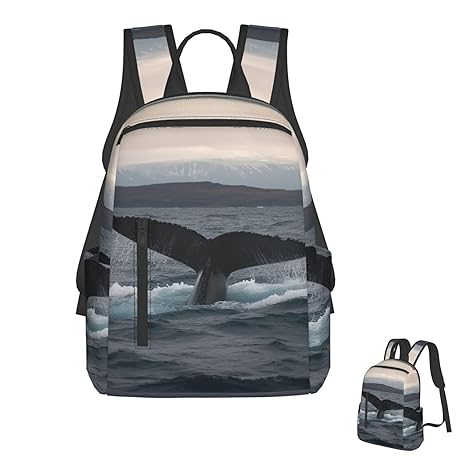 Backpack Humpback Whale Tail Travel Casual Laptop Backpack Adjustable Hiking Daypack for Men Women, Black, One Size