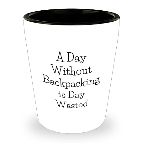 Backpacking Enthusiasts Unite with A Day Without Backpacking Is Day Wasted White Ceramic Shot Glass, Christmas Unique Gifts from Friends for Family, Perfect for Men and Women, Funny Quote