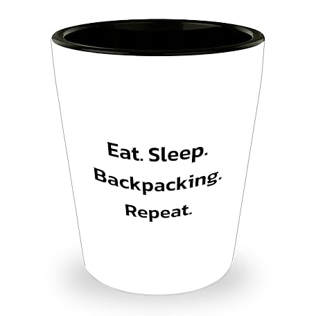 Sản phẩm Backpacking Gifts for Him Eat Sleep Backpacking Repeat Shot Glass White Ceramic 1.5oz Microwave Dishwasher Safe for Graduation đang được bán với giá ưu đãi là $16.2955 tại nước Mỹ.