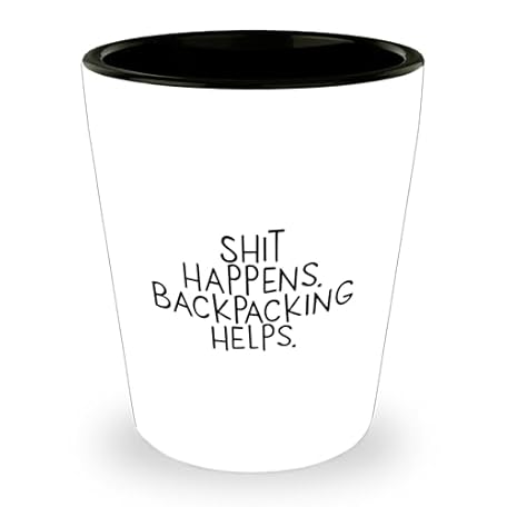 Backpacking Shot Glass Quote - Shit Happens, Backpacking Helps - Birthday Unique Gift for Backpackers