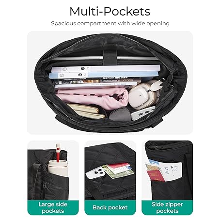 Thông tin sản phẩm BAGSMART Crush Tote Bag for Women, 20L Puffer Work Tote with Zipper, Travel Essentials Quilted Nurse Hospital Bag