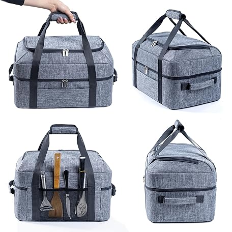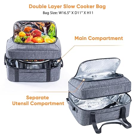 Thông tin sản phẩm BAGSPRITE Double-Layer Slow Cooker Carrying Bag for 6-8 Quart CrockPot and Hamilton Beach Slow Cookers, Travel Bag with Lid Fastener for Crock-pot, Portable Carrier Case, Grey
