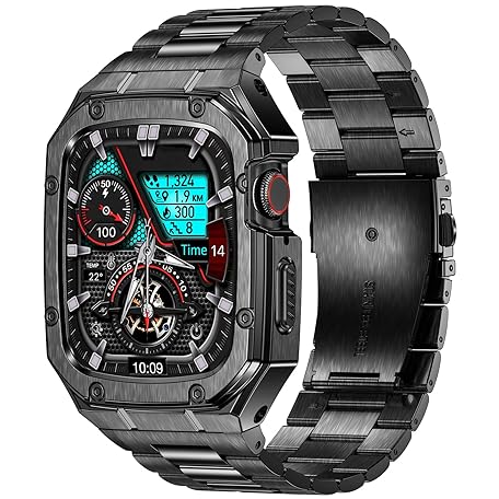 • BAITEYOU Stainless Steel Watch Band with Case Compatible with Apple Watch Series 10 46mm, Rugged Strap with Metal Protective Bumper Cover for iWatch Bands Men (Black)