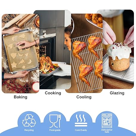 Baking Sheet with Wire Rack Set, Stainless Steel Cookie Sheet Baking Pan Toaster Oven Tray with Cooling Rack, 12.4 x 10 x 1 Inch Quarter Sheet Pan - Non Toxic & Dishwasher Safe