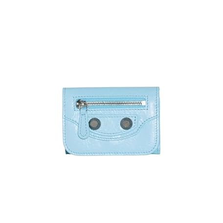 Balenciaga Le Cagole Mini Wallet 715234 1VG9Y 4636 Sea Blue – Crinkled Lamb Leather Wallet with Signature Studs, Front Zip Pocket & Flap Closure – Made in Italy