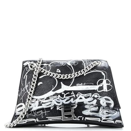 Balenciaga, Pre-Loved Graffiti Crush Chain Flap Bag Leather Medium, Black