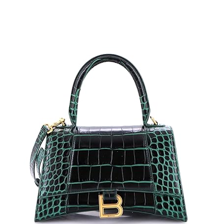 Balenciaga Pre-Loved Hourglass Top Handle Bag Crocodile Embossed Leather Small, Black