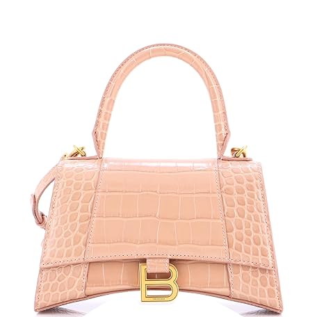 Balenciaga Pre-Loved Hourglass Top Handle Bag Crocodile Embossed Leather Small, Neutral