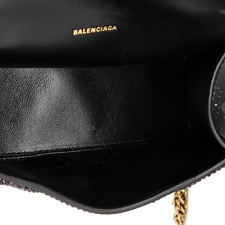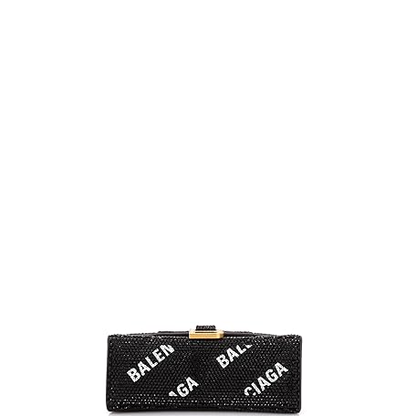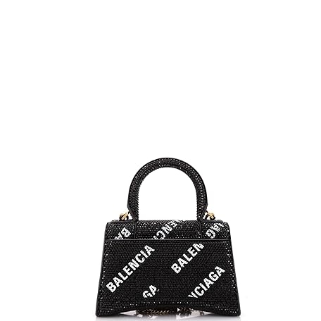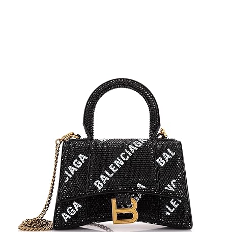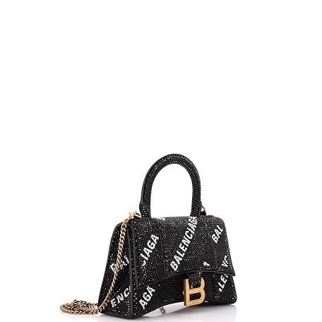 Balenciaga Pre-Loved Hourglass Top Handle Bag Suede and Allover Logo Crystals XS, Black