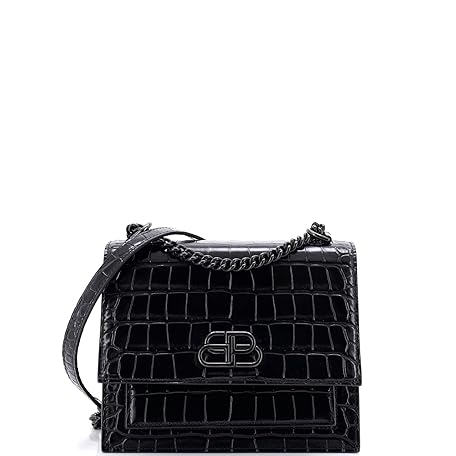 Balenciaga Pre-Loved Sharp Shoulder Bag Crocodile Embossed Leather Small, Black