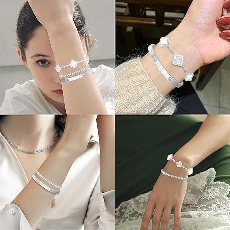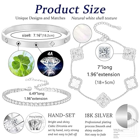Sản phẩm BALTERS Lucky Four Leaf Bracelets Set - Silver Plated Cubic Zirconia Bangle for Women đang được bán với giá ưu đãi là $29.4191 tại nước Mỹ.