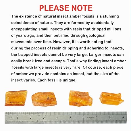 Baltic Amber Natural Fossil Insects,Insects from Millions of Years ago,True Insect Samples-Science Classroom Science Education Animal Specimens
