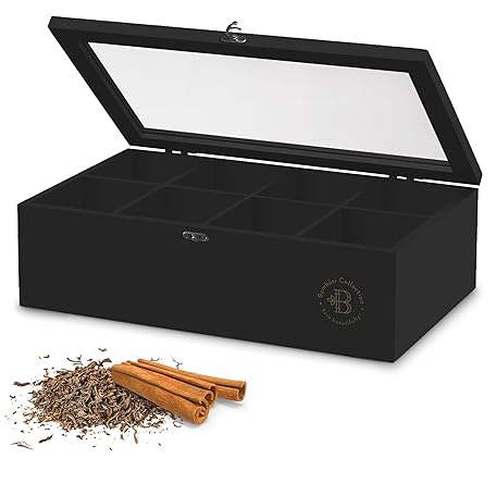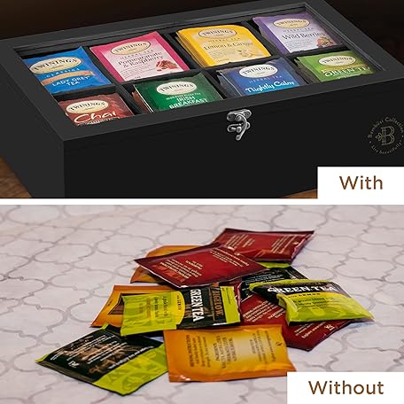Sản phẩm Bambüsi Tea Bag Organizer - Bamboo Tea Box Organizer Storage Box, Tea Bag Holder with Acrylic Window, Magnetic Lid Keeps Tea Bags Fresh - Ideal Gifts Tea Organizer Caddy (Tea Not Included) - Black đang được bán với giá ưu đãi là $24.8084 tại nước Mỹ.