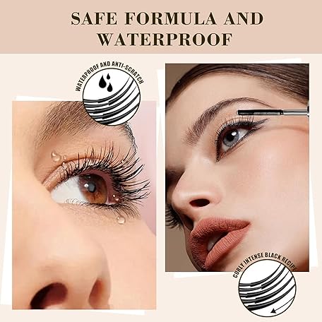 BANGFENG Doll Mascara, Metal Curling Iron Strong Mascara, 3d Curling Eyelash Long-Lasting Volume Mascara Waterproof, Smudge-Proof, No Flaking, No Clumping Magic 4d Silk Fiber For Mascara Makeup (Black)