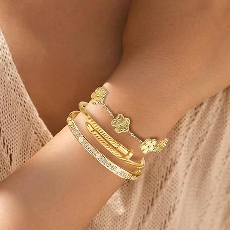 Sản phẩm Bangle Bracelets for Women Personalized Cubic Zirconia Love Bracelets 18K Gold Plated Bangles Bracelets Gifts for Her đang được bán với giá ưu đãi là $22.8791 tại nước Mỹ.