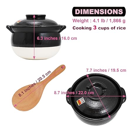 Thông tin sản phẩm Banko-Yaki Fluffy Rice Pot, Earthenware Rice Cooker with inner lid Measuring Cup and Paddle, Traditional Japanese Donabe for Evenly Cooked Rice, Mixed Rice, and Porridge (3-Gou/Serves 3 to 5 people)