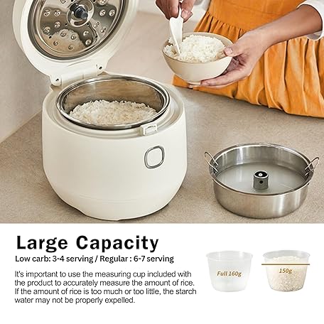 Thông tin sản phẩm BANU Low Carb Rice Cooker - 4 Cups(white rice), 2 cups(Low carb rice) 7 Preset Functions, 20-Hr Timer, Led Touch, Auto Keep Warm - Healthy Cooking for Keto and Low Glycemic Diets - White / 8-Cup (Cooked) (4-Cup UNCOOKED) Digital Rice Cooker and Food Steamer