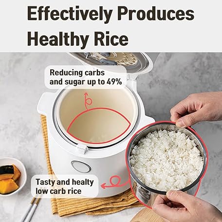 Thông tin sản phẩm BANU Mini Low Carb Rice Cooker Japanese Low Carb Rice Cooker 3 Cups (white rice), 1 Cup (Low carb rice) Uncooked with Stainless Steel Steamer, Rice Maker Low Sugar Rice Function, 24H Delay Timer & Auto Keep Reduce One-Touch Cooking - White