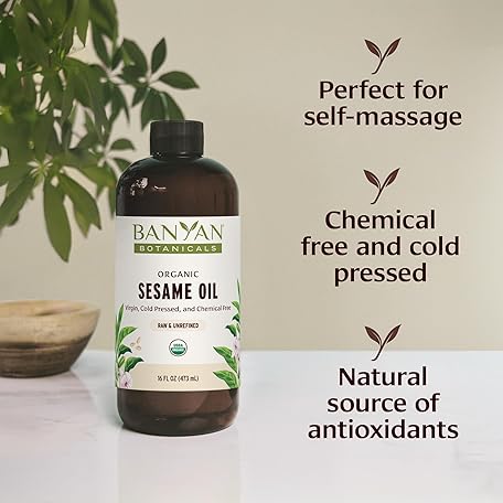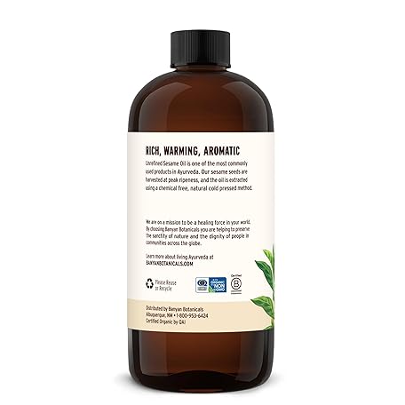 Thông tin sản phẩm Banyan Botanicals Sesame Oil – Organic & Unrefined Ayurvedic Oil for Skin, Hair, Oil Pulling & More – Multiple Sizes – 16oz. – Non GMO Sustainably Sourced Vegan