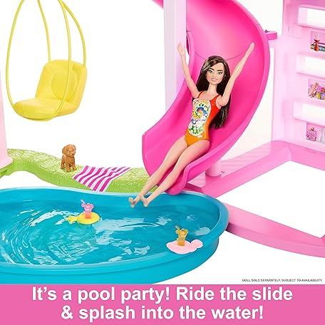 Thông tin sản phẩm Barbie Dreamhouse, Pool Party Doll House with 75+ Pieces and 3-Story Slide, House Playset, Pet Elevator and Puppy Play Areas