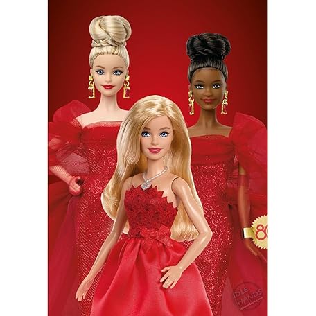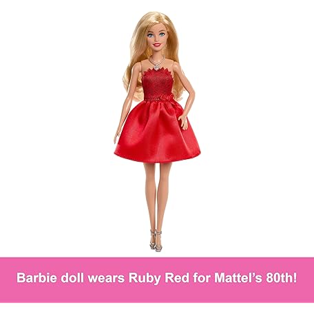 • Barbie Mattel 80th Anniversary Ruby-Red Celebration Blonde Fashion Doll Wearing Red Dress with Silvery Shoes & Necklace, Collectible Toy