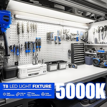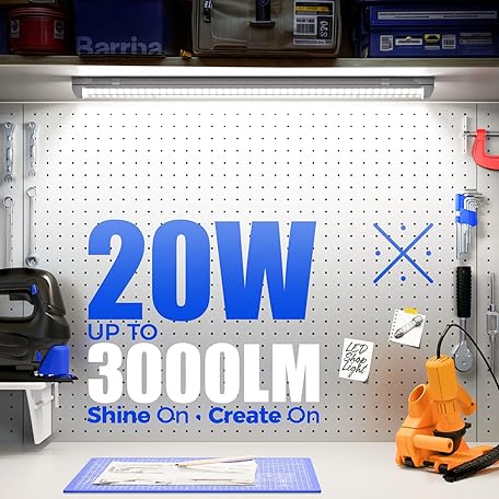 Thông tin sản phẩm Barrina LED Shop Lights 2FT, 20W 3000LM 5000K, T8 LED Light Fixture, Clear Cover, Ceiling and Utility Shop Light, Linkable Tube Lights for Room, Garage, Workbench, Warehouse, 2 Packs