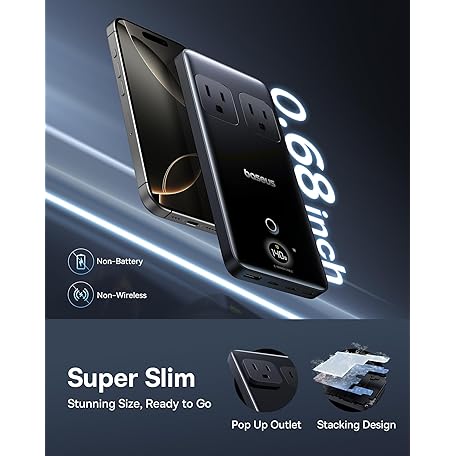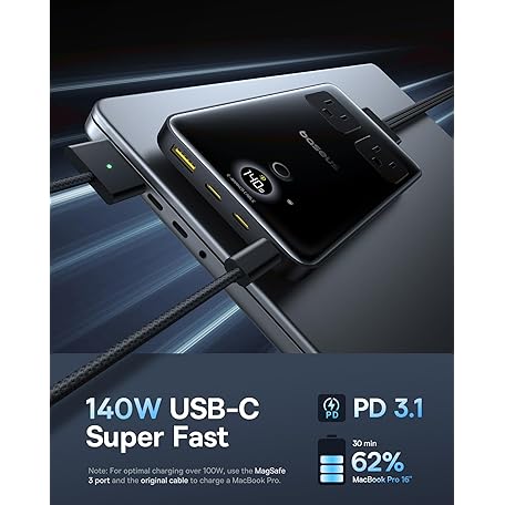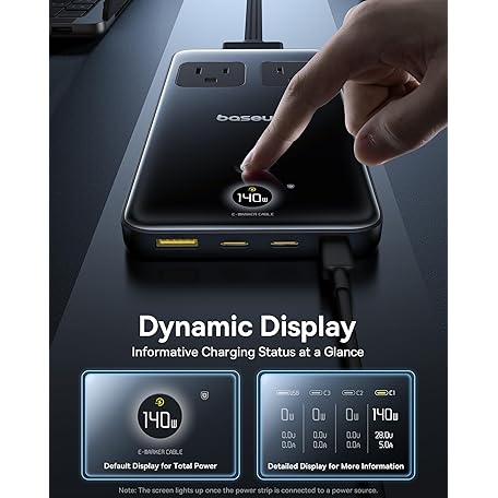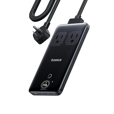 Baseus Blade Charging Station 140W, 6-in-1 Compact USB C Power Strip with 5ft Detachable Flat Extension Cord, Digital Display, Slim Fast Desktop Charger for Work and Travel (Not a Portable Battery)